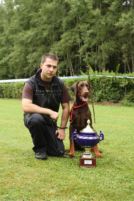 První letošní říjnovou sobotu proběhlo, jako každoročně, mistrovství ČR dobrmanů ve výkonu. Konalo se ve Velkých Němčicích a Casiově mamce Sárince se tam skvěle dařilo! A výsledek opravdu stojí za to - 1.místo v kategorii IPO3 a titul MISTR ČR 2011. Casius se připojuje ke všem gratulacím :o)